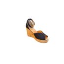 Sandale compensée élégante et estivale, ce modèle associe une toile bleue marine une semelle en corde tressée esprit espadrille. Sa bride à la cheville ajustable assure un maintien confortable, tandis que le talon compensé affine la silhouette tout en restant agréable à porter. Idéale pour sublimer vos tenues d’été, du quotidien aux soirées ensoleillées.