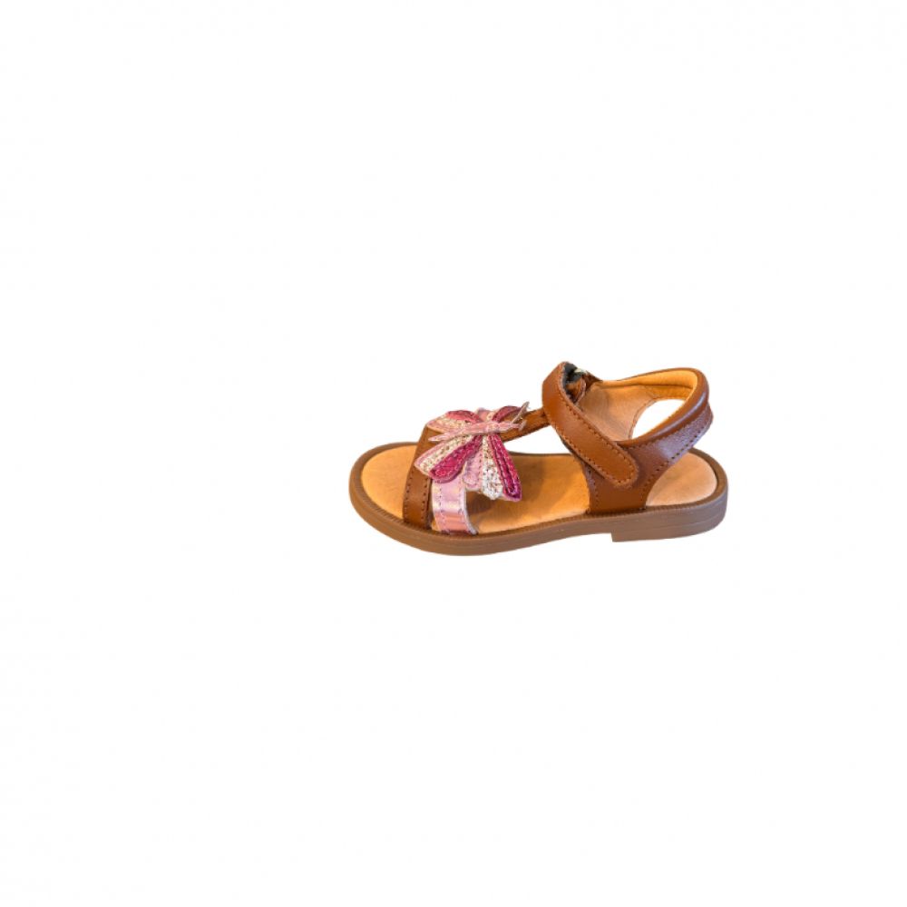 Adorable sandale enfant au coloris camel chaleureux, sublimée par un joli papillon scintillant sur le dessus.