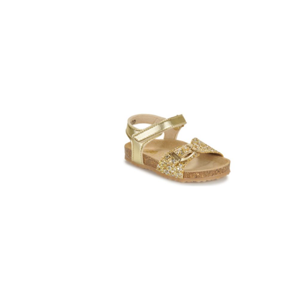 Cette sandale fille allie une bride dorée lumineuse à un avant doré pailleté irrésistible. Sa semelle ergonomique façon liège offre un maintien doux et naturel, parfait pour accompagner toutes les aventures de l’été. Un modèle fun, confortable et plein de style.