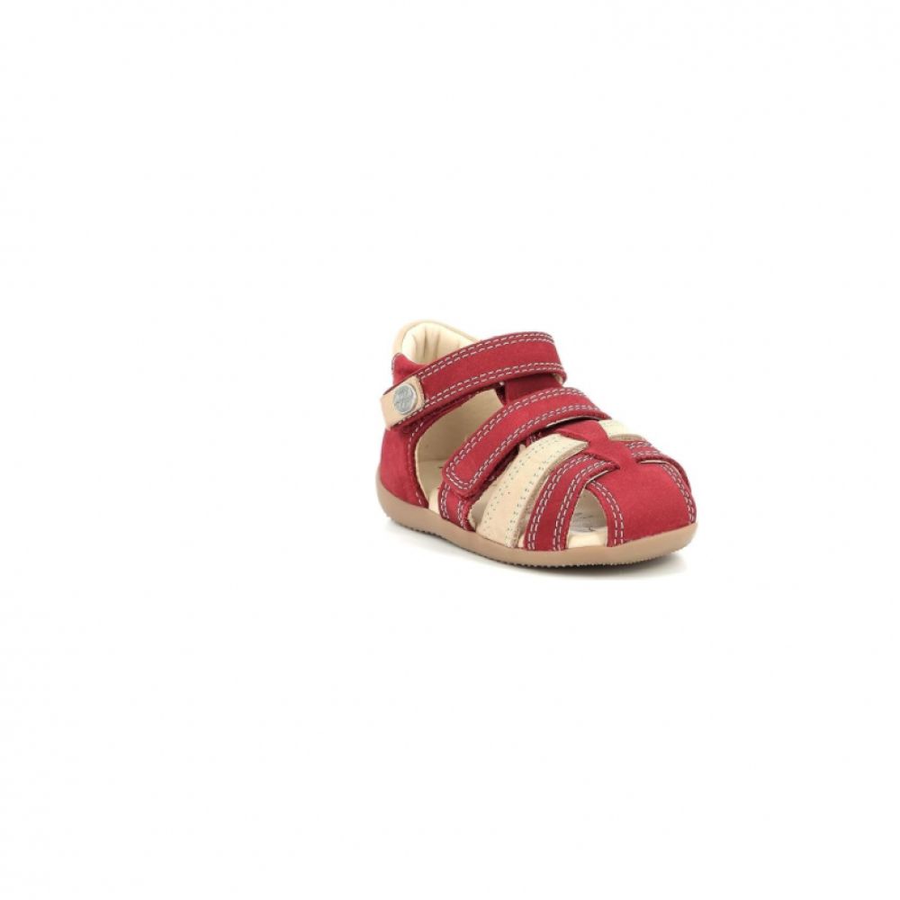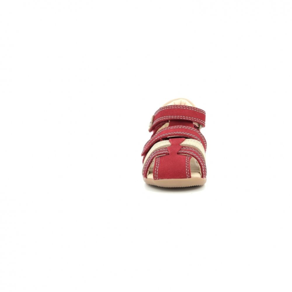 Cette sandale pour tout-petit allie confort, maintien et style grâce à sa forme semi-fermée, ses scratchs ajustables et sa semelle souple idéale pour les premiers pas. Son design rouge et beige, à la fois moderne et chaleureux, protège le pied tout en laissant respirer.