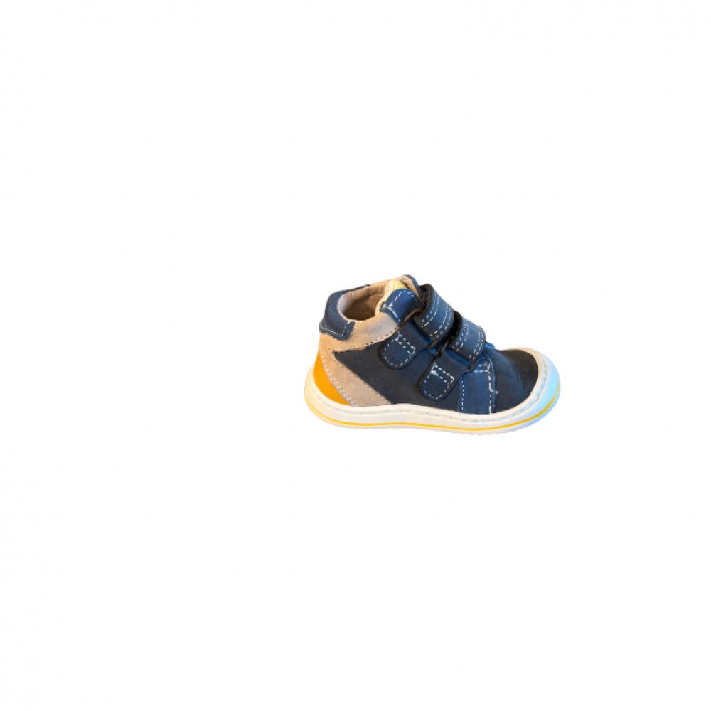 Chaussure montante idéale pour les premiers pas, pliant maintien, confort et style. Doté de deux bandes velcro réglables, elle assure un ajustement parfait et un enfilage facile. Sa semelle souple et antidérapante accompagne les mouvements naturels du pied, tandis que son design bleu avec détails contrastés apporte une touche moderne. Parfaite pour le quotidien des tout-petits, en toute sécurité.